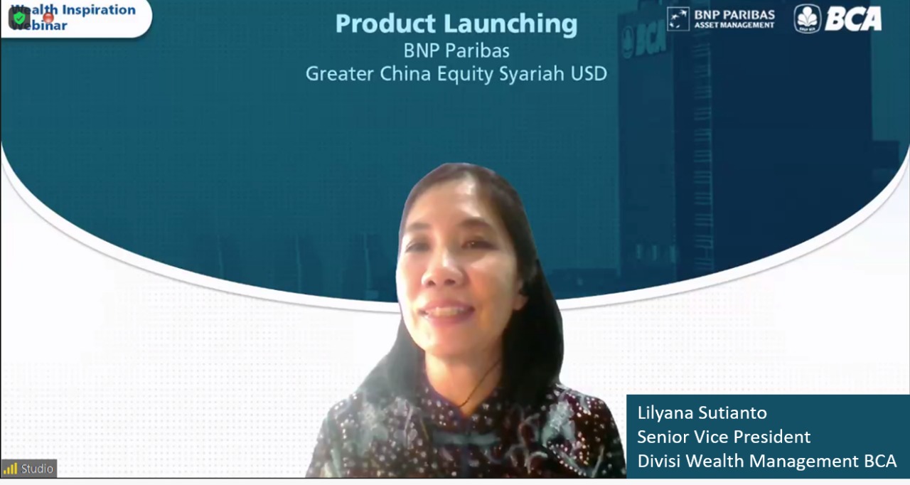 BCA Tambahkan Produk Reksa Dana Saham USD di WELMA – Senior Vice President Divisi Wealth Management BCA Lilyana Sutianto dalam peluncuran Reksa Dana Syariah BNP Paribas Greater China Equity Syariah USD pada Senin (12/07). BCA menambahkan pilihan Reksa Dana Saham USD yang berbasis syariah, untuk melengkapi solusi investasi yang sudah ada di aplikasi WELMA.