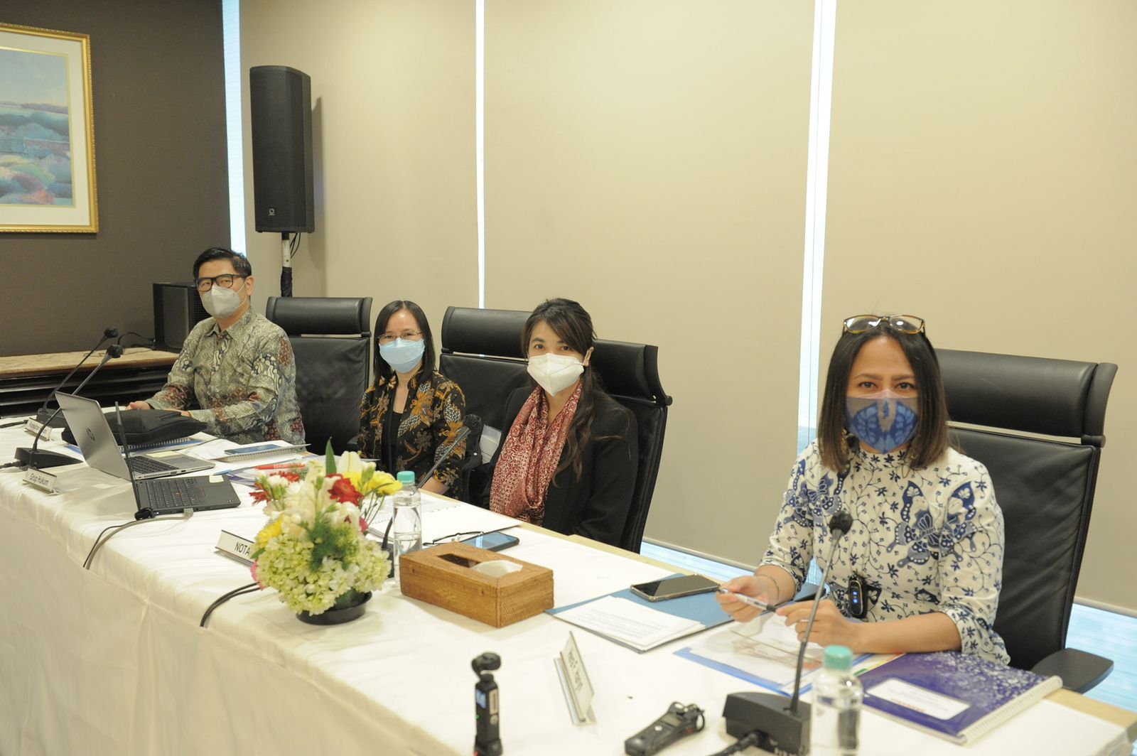 RUPS-LB BCA 2021 – Presiden Komisaris BCA Djohan Emir Setijoso (tengah), Komisaris BCA Tonny Kusnadi (kanan), Presiden Direktur BCA Jahja Setiaatmadja (kedua dari kanan), Direktur BCA Subur Tan (kedua dari kiri), dan Direktur BCA Vera Eve Lim (kiri) di tengah penyelenggaraan Rapat Umum Pemegang Saham Luar Biasa (RUPS-LB) BCA di Jakarta, Kamis (23/09). PT Bank Central Asia Tbk (IDX: BBCA) memutuskan untuk melakukan aksi korporasi pemecahan saham yang beredar (stock split). Aksi korporasi tersebut telah mendapat persetujuan dari Rapat Umum Pemegang Saham Luar Biasa (RUPS-LB) yang diadakan secara elektronik pada hari Kamis (23/9/2021).