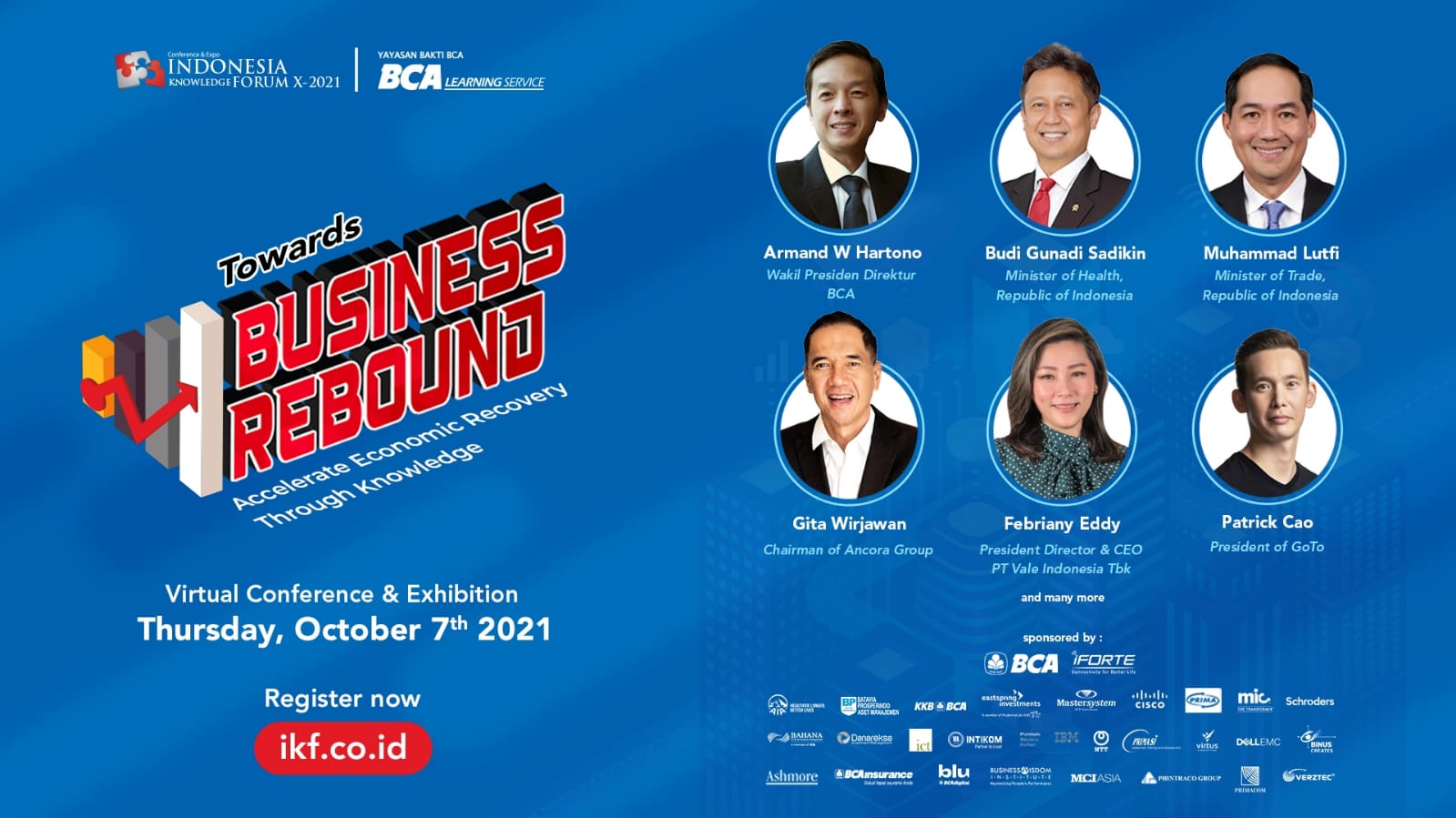Jakarta, 05 Oktober 2021 – Pandemi COVID-19 yang melanda dunia dan Indonesia masih belum berakhir, serta masih menjadi tantangan bagi berbagai sektor tidak terkecuali sektor ekonomi. Berdasarkan laporan Indonesia Economic Prospect – World Bank June 2021, ekonomi Indonesia diharapkan akan mulai pulih (rebounding) pada tahun 2021 dan berangsur-angsur menguat pada tahun 2022. PT Bank Central Asia Tbk. (BCA) pun mencermati kondisi tersebut dengan melakukan berbagai upaya pemulihan ekonomi. Kali ini BCA melalui BCA Learning Service akan menghadirkan kembali Indonesia Knowledge Forum (IKF) X – 2021.
