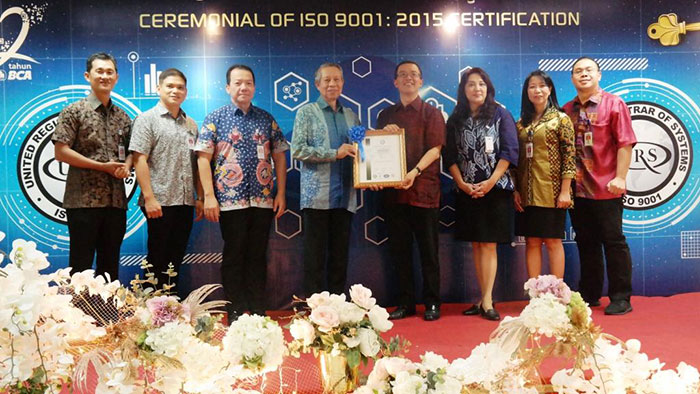 Hadir untuk menerima sertifikat ISO 9001:2015, Direktur BCA Suwignyo Budiman yang diserahkan langsung oleh Direktur URS Indonesia Hominjono. Turut hadir mendampingi, Executive Vice President Consumer Credit Business BCA Felicia Mathilda Simon, Kepala Kantor Wilayah VIII BCA Haryono Wongsonegoro, Senior Vice President Consumer Credit Sales Sub Division BCA Welly Yandoko, Senior Vice President Consumer Credit Strategic Management Sub Division BCA Frans Sjarifudin dan Senior Vice President Consumer Credit Service Sub Division BCA Handy Weriko serta manajemen BCA lainnya di Jakarta, Rabu (13/03).