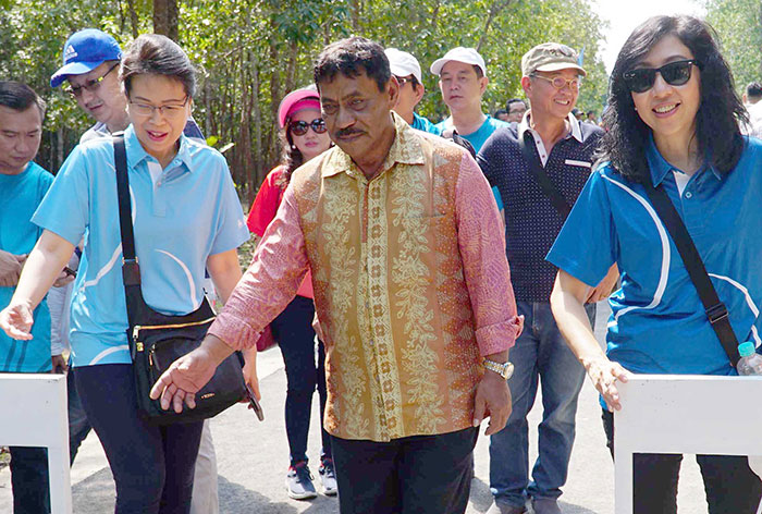 Hadir untuk meresmikan Desa Binaan Bukit Peramun dan Wisata Aik Rusa’ Berehun yaitu Direktur BCA Vera Eve Lim didampingi Executive Vice President CSR BCA Inge Setiawati, Kepala Kantor Wilayah VI BCA Daniel Hendarto, Kepala KCU BCA Tanjung Pandan Rustam, Kepala KCU BCA Pangkal Pinang Vanessa Claudia Flaviana bersama segenap pejabat pemerintah Belitung Barat dan Timur di Belitung, Sabtu (04/05). Turut hadir juga dalam peresmian ini adalah 40 Nasabah Prioritas BCA KCU Tanjung Pandan.