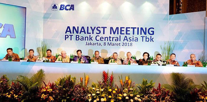 Jakarta, 8 Maret 2018 – PT Bank Central Asia Tbk (IDX: BBCA) dan para entitas anak mengumumkan kinerja keuangan konsolidasi pada tahun 2017, menutup tahun dengan pertumbuhan laba bersih sebesar 13,1% mencapai Rp 23,3 triliun dibandingkan Rp 20,6 triliun pada tahun sebelumnya. Pendapatan operasional yang terdiri dari pendapatan bunga bersih dan pendapatan operasional lainnya tumbuh 6,0% menjadi Rp 57,0 triliun pada tahun 2017, dibandingkan Rp 53,8 triliun pada tahun 2016. Pendapatan bunga bersih BCA meningkat 4,1% menjadi Rp 41,8 triliun sedangkan pendapatan operasional lainnya tumbuh 11,5% menjadi Rp 15,1 triliun pada tahun 2017.