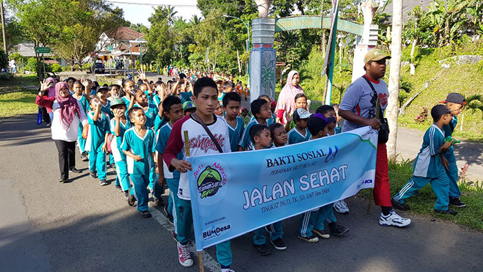 EDUKASI BCA DI DESA WISATA – Siswa-siswi SD Negeri 2 Desa Tamansari dengan antusias mengikuti edukasi kesehatan dan menabung di SD Negeri 2 Desa Tamansari, Banyuwangi, Sabtu (24/03). Edukasi kesehatan dan menabung ini diikuti oleh sekitar 700 pelajar dari SDN 1, SDN 2, SDN 4, SDN 5, serta MI Sunan Giri di Desa Tamansari, Banyuwangi. Dalam rangka mendorong pola hidup sehat, BCA juga menggelar jalan sehat, pemeriksaan mata, dan donasi kacamata yang disambut antusias oleh warga Tamansari dari kalangan usia anak hingga lanjut usia.