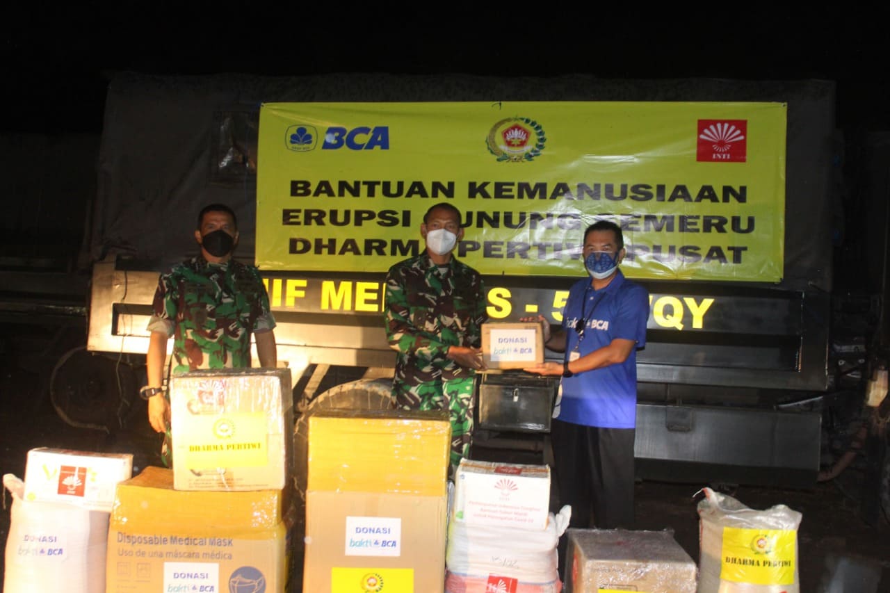 Penyerahan donasi melalui BPBD Lumajang dilakukan di Pendopo Kabupaten Lumajang oleh Kepala BCA Kanwil VII Weminto Suryadi kepada Sekretaris BPBD Lumajang Endah Maryuni, pada Selasa (7/12). Sementara itu penyerahan donasi melalui TNI diserahkan kepada Komandan Posko Terpadu Penanggulangan Bencana Alam APG (Awan Panas Guguran) Gunung Semeru sekaligus Danrem 083 Malang Kolonel Inf. Irwan Subekti di lokasi pengungsian di Posko Sumbergono Kab. Lumajang pada Rabu (8/12).