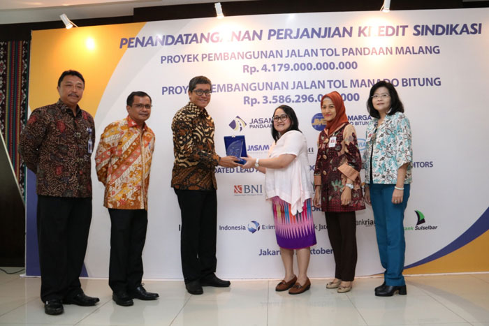 Jakarta, 13 Oktober 2017 - PT Bank Central Asia (BCA) Tbk menegaskan komitmen mendukung pembangunan infrastuktur Indonesia dengan menandatangani dua Perjanjian Kredit Sindikasi yaitu untuk dua proyek jalan tol yang termasuk dalam Proyek Strategis Nasional yaitu Jalan Tol Pandaan Malang sebesar Rp1 triliun dari total pembiayaan sindikasi sebesar Rp 4,179 triliun dan proyek Tol Manado Bitung sebesar Rp. 652,8 miliar dari total pembiayaan sindikasi sebesar Rp 3,586 triliun. Keduanya berjangka waktu 15 tahun.