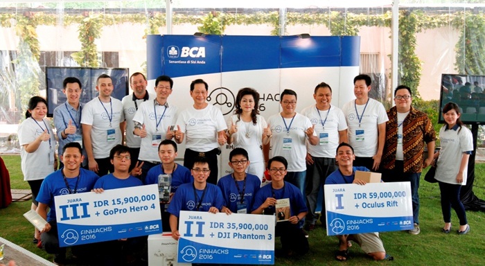 Jakarta, 24 April 2016 - Selama 2 hari 1 malam, 59 tim peserta Financial Technology Hackathon (Finhacks) 2016 #HackbyTheBeach telah berkumpul dan merealisasikan ide aplikasi pembayaran berbasis eWallet. Pada hari ini, Minggu, 24 April 2016, hasil aplikasi para semifinalis akan kembali diuji dan dinilai para dewan juri. Dewan juri memilih 8 tim dengan aplikasi terbaik untuk maju ke babak final dan mempresentasikan aplikasi yang diajukan untuk kemudian dipilih tiga ide terbaik. Dewan juri menetapkan Fariz Tadjoedin dengan aplikasi Chatbanking sebagai juara pertama, Ambisnis.com dengan aplikasi Guebayar sebagai juara kedua, dan Atom dengan aplikasi Instapay sebagai juara ketiga.