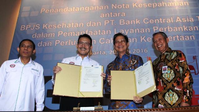 Jakarta, 20 Juni 2016 - PT Bank Central Asia Tbk telah berkomitmen untuk memberikan pelayanan terbaik dan mempermudah transaksi kebutuhan sehari-hari masyarakat Indonesia, secara khusus nasabah setia BCA. Komitmen ini diwujudnyatakan dengan penandatanganan nota kesepahaman (MoU) dengan Badan Penyelenggara Jaminan Sosial Kesehatan (BPJS Kesehatan) mengenai Pemanfaatan Layanan Perbankan dan Perluasan Cakupan Kepesertaan.