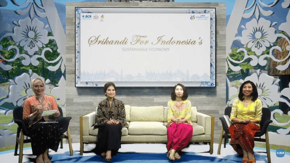 BCA Dukung Pemberdayaan Perempuan Indonesia Dalam Sektor Ekonomi Berkelanjutan – Dalam rangka memperingati Hari Kartini, BCA menggelar webinar yang bertajuk Srikandi for Indonesia's Sustainable Economy. Turut hadir Direktur Keuangan BCA Vera Eve Liem (keempat dari kiri),Head of Marketing Communication Asia Pacific Rayon Sheila Rachmat(ketiga dari kiri),Founder Srikandi Bisnis dan Keuangan Indonesia Aviliani (kedua dari kiri) yang menjadi narasumber dalam webinar Hari Kartini memberikan pemaparan terkait peran wanita di dalam sektor ekonomi berkelanjutan yang dipandu oleh Norisa Saiffudin selaku moderator: Senior Vice President of Marketing Communication BCA (pertama dari kiri) pada Jumat (22/4). BCA turut serta mendorong keterlibatan perempuan untuk mengambil peran penting dalam memajukan budaya dan ekonomi local.