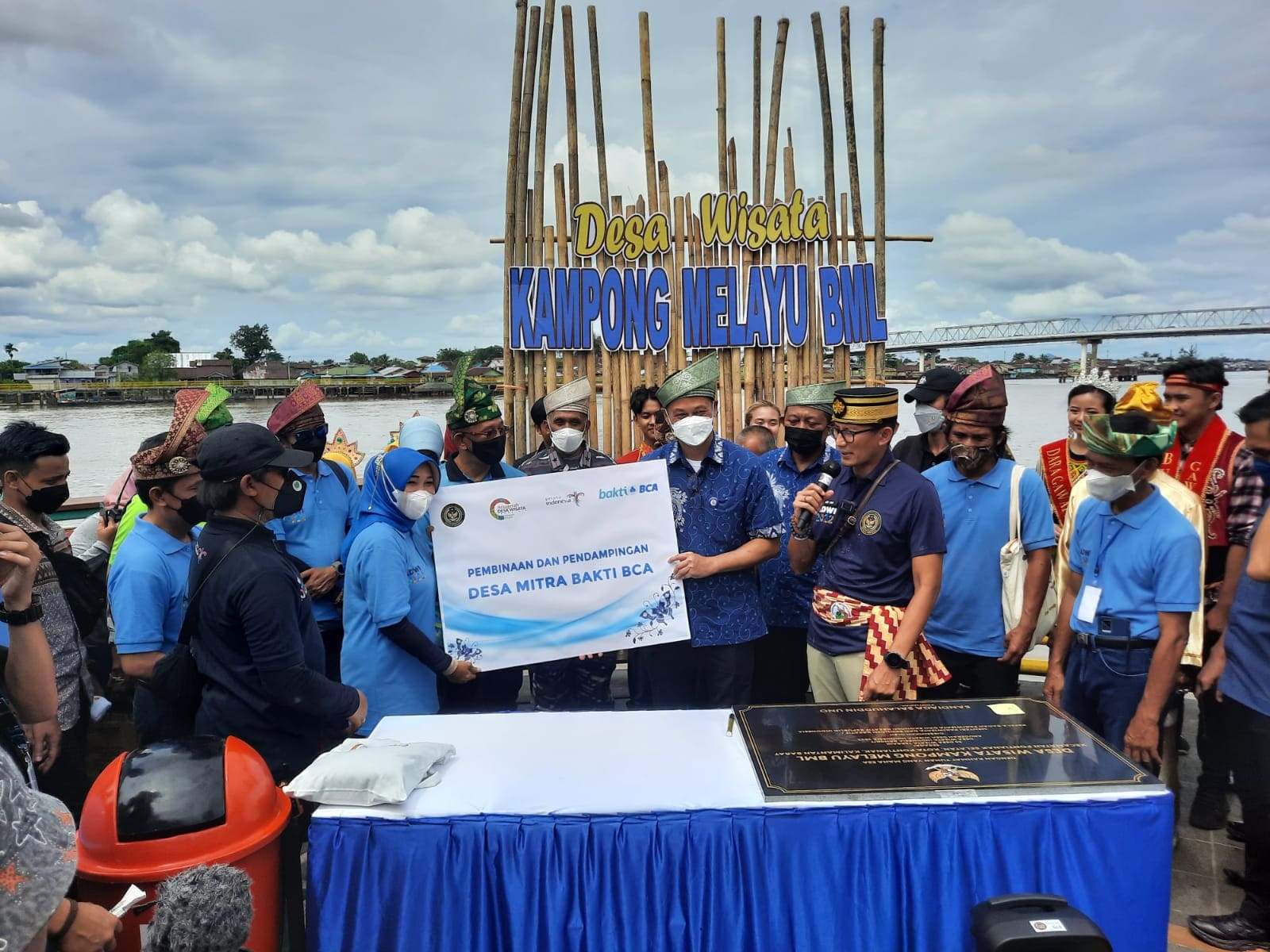Anugerah Desa Wisata Mitra Kampung Melayu Pontianak – Seremoni peresmian Desa Mitra Bakti BCA Kampung Melayu BML di Pontianak yang dihadiri oleh Menteri Pariwisata dan Ekonomi Kreatif Sandiaga Uno, Kepala KCU Kubu Raya Eduard Hans Winarko dan Lurah Benua Melayu Laut Lestari pada Minggu (31/07).
