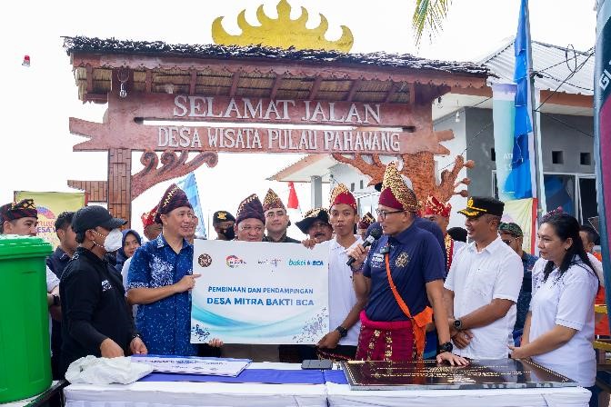 Menteri Pariwisata dan Ekonomi Kreatif Sandiaga Uno bersama dengan Kepala KCU BCA Lampung Peter Soeryadi melakukan kunjungan ke Pulau Pahawang, Lampung pada Minggu (28/08). Desa Wisata di Pulau Pahawang merupakan Desa Mitra Bakti BCA yang turut menjadi bagian dari program ADWI 2022.