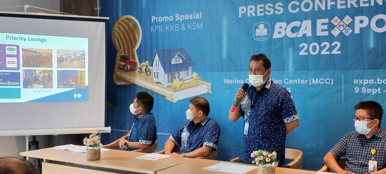BCA Gelar BCA Expo 2022 Semarang – (kiri-kanan) Kepala Kantor Wilayah II BCA Widjaja Stephen, Senior Vice President Consumer Loan BCA Handy Weriko, Kepala Pengembangan Bisnis Cabang Semarang sekaligus Ketua Panitia BCA Expo Semarang 2022 Iwan Kuswandi, beserta Head Regional KKB Eddy Chandra hadir secara langsung dalam gelaran Press Conference BCA Expo 2022 Semarang pada Selasa (13/09). BCA Expo offline di Semarang akan dimulai dari tanggal 17 – 18 September 2022 di Marina Convention Centre Semarang. BCA menghadirkan 12 grup developer dengan 16 project. Tak ketinggalan pula, KKB BCA menghadirkan 15 merek mobil ternama yang menawarkan beragam benefit pembelian, yakni cashback dan diskon serta display Mobil Listrik dari Merk Wuling. Untuk kendaraan motor, BCA menggandeng 11 merek, Vespa, Benelli, Honda Big Bike, Polytron, Kawasaki dan lain sebagainya. Selanjutnya, acara online dilaksanakan sejak tanggal 9 September hingga 10 Oktober 2022 yang dapat diakses melalui expo.bca.co.id selama 24 jam penuh.