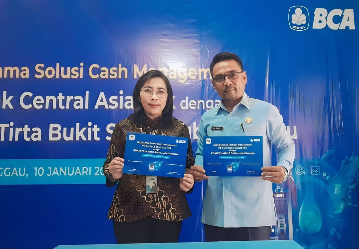 Seremoni kerja sama BCA dengan Perumda Air Minum Tirta Bukit Sulap dilakukan pada Selasa (10/01). Hadir dalam seremoni Kepala KCU BCA Lubuklinggau Royani Karundeng bersama Kepala Operasional BCA Cabang Lubuklinggau Nur Hidayat dan Direktur Utama Perumda Air Minum Tirta Bukit Sulap kota Lubuklinggau Hadi Purwanto.