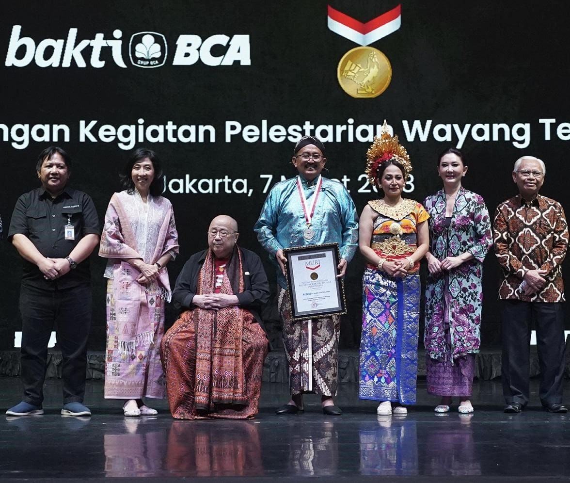 Rekor MURI untuk BCA - Direktur BCA Antonius Widodo Mulyono (tengah, membawa penghargaan) dan Direktur BCA Vera Eve Lim (kedua kiri), bersama Pendiri dan Ketua Umum MURI Jaya Suprana (ketiga kiri), didampingi EVP Corporate Communication & Social Responsibility BCA Hera F. Haryn (ketiga kanan), Direktur Utama MURI Aylawati Sarwono (kedua kanan), Ketua Kelompok Kerja Pembinaan Lembaga Kebudayaan Kemendikbud Ristek RI Wawan Yogaswara (paling kiri) dan Dewan Pembina Senawangi Kodradi (paling kanan). BCA menerima rekor MURI untuk Perusahaan dengan Kegiatan Pelestarian Wayang Terbanyak pada Selasa (7/3). Sejak tahun 2012, PT Bank Central Asia Tbk (BCA) telah melaksanakan program "Wayang for Student" yang melibatkan ribuan pelajar SD hingga SMA di sejumlah kota di Indonesia, sebagai pemegang estafet untuk turut senantiasa menjaga identitas budaya Indonesia yang berdaulat.