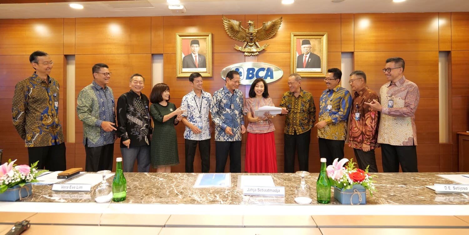 Kinerja Solid Bisnis Berkelanjutan, Laba BCA Tumbuh 34,0% menjadi Rp24,2 Triliun - Presiden Komisaris BCA Djohan Emir Setijoso (keempat kanan), Presiden Direktur BCA Jahja Setiaatmadja (tengah), Wakil Presiden Direktur BCA Armand W. Hartono (kelima kiri), Wakil Presiden Direktur BCA Hendra Lembong (kiri), Direktur BCA Subur Tan (kedua kanan), Direktur BCA Lianawaty Suwono (keempat kiri), Direktur BCA Santoso (ketiga kiri), Direktur BCA Vera Eve Lim (kelima kanan), Direktur BCA Haryanto T. Budiman (kanan), Direktur BCA John Kosasih (kedua kiri), dan Direktur BCA Antonius Widodo Mulyono (ketiga kanan), saat paparan kinerja Semester I PT Bank Central Asia Tbk (BCA). BCA dan entitas anak mencetak pertumbuhan laba bersih sebesar 34,0% YoY menjadi Rp24,2 triliun di semester I 2023. Pertumbuhan ini didorong oleh kenaikan volume kredit, perbaikan kualitas pinjaman, serta peningkatan volume transaksi dan pendanaan.