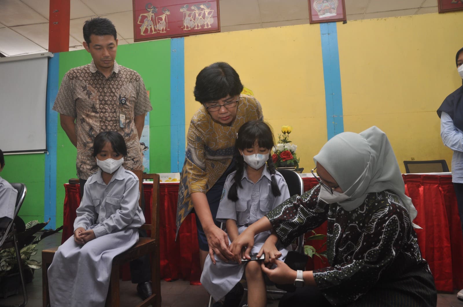 Proses penyerahan bantuan dilangsungkan secara simbolis oleh Kepala KCU Yogyakarta Dovi Kurniawan kepada Wakil Dekan Bidang Kerja Sama, Alumni, dan Pengabdian kepada Masyarakat FK-KMK UGM Dr. dr. Sudadi, Sp.An-TI., Subsp.N.An(K)., Subsp.An.R(K) di SD Negeri Percobaan 2 Yogyakarta pada Selasa (7/11). Turut hadir dalam seremoni tersebut Kepala Dinas Kesehatan Provinsi Daerah Istimewa Yogyakarta Endang Pamungkasiwi, SKM., M.Kes, Perwakilan Dinas Kesehatan Kabupaten Sleman dr. Lina Nur Islamiyyah Yunus, Ketua Tim COHARD-PH RSUP Dr. Sardjito Prof. Dr. dr. Lucia Kris Dinarti, Sp.PD(K)., Sp.JP(K), dan Kepala Sekolah SDN Percobaan 2 Sri Hartini, S.Pd.