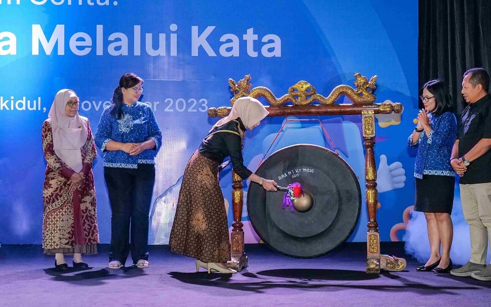 Tingkatkan Kompetensi Literasi Generasi Muda, BCA Gelar Program Semarak Literasi – Bunda Literasi Gunungkidul Hj. Diah Purwanti Sunaryanta (tengah) membunyikan gong menandai penutupan program Semarak Literasi yang telah digelar BCA di Kabupaten Gunungkidul pada Jumat (04/11). Acara juga dihadiri oleh Kepala BCA KCP Wonosari Sani Bayuningrum (kedua kanan) bersama Kepala Dinas Kebudayaan (Kundha Kabudayan) Kabupaten Gunungkidul Chairul Agus Mantara (kanan), serta Perwakilan Kepala Balai Pendidikan Menengah Kabupaten Gunungkidul Sri Wahyuni Dwiyanti (kiri). BCA menegaskan komitmennya dalam mendukung pendidikan berkualitas dan meningkatkan kecakapan literasi siswa melalui program Semarak Literasi bertajuk “Menyulam Cerita: Jelajahi Dunia Melalui Kata” yang bertepatan dengan Bulan Bahasa. Melalui program ini, BCA mendorong generasi muda untuk lebih mengenal dan memahami literasi membaca secara lebih menyenangkan melalui berbagai kompetisi literasi, workshop penulisan hingga edukasi literasi.