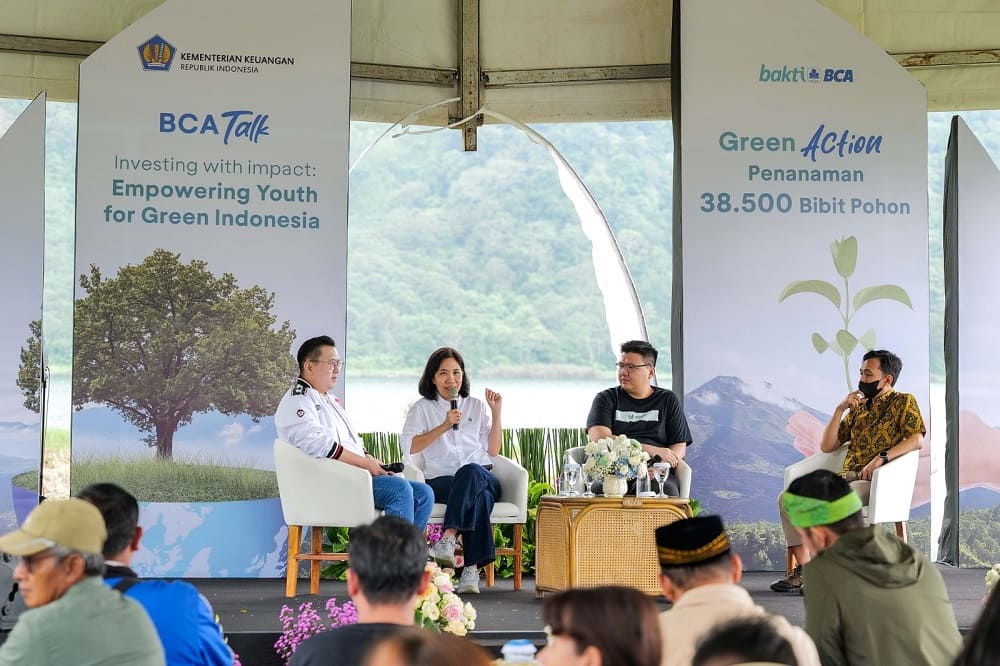 Tren Investor Muda Pilih Investasi Hijau - SVP Wealth Management BCA Lilyana Sutianto (kedua kiri), Kepala Seksi Analisis Harga dan Fiskal DJPPR Kemenkeu Andy Ali Mustafa (kanan), Chief Growth Officer Jejakin Sudono Salim (kedua kanan) dalam talkshow edukasi finansial BCA Talk yang bertajuk "Investing with Impact: Empowering Youth for Green Indonesia". Meningkatnya kesadaran akan isu lingkungan di kalangan generasi muda membuat anak muda cenderung mencari investasi yang mendukung proyek hijau yang berkelanjutan. Awal November 2023, pemerintah merilis Surat Berharga Syariah Negara (SBSN) Ritel Green Sukuk yang menjadi edisi Sukuk Tabungan seri 011 (ST011). Green Sukuk merupakan instrumen pendanaan untuk mendukung proyek-proyek hijau yang berkontribusi pada program mitigasi dan adaptasi perubahan iklim serta Sustainable Development Goals (SDGs). Sebagai salah satu perbankan nasional, BCA menjadi salah satu mitra distribusi. Sejak pertama kali diterbitkan hingga Senin (21/11), jumlah pemesanan ST011 di BCA telah mencapai Rp3 triliun dengan komposisi lebih dari 69% pemesanan pada tenor 2 tahun.