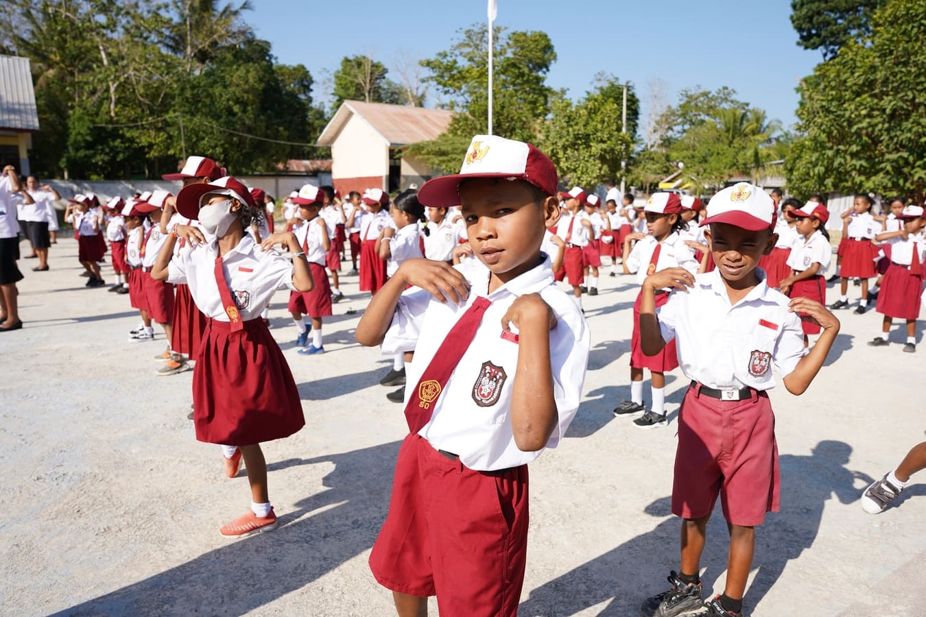 Menghimpun Semangat dengan Senam Motorik - Para murid SD Inpres Nunumeu, Soe, Timor Tengah Selatan, NTT, mengawali aktivitas di sekolah sedang melaksanakan SMART (Senam Motorik Aktif Riang Sehat). Senam ini merupakan bagian dari aktivitas yang diperkenalkan dalam program Ksatria BCA agar motorik anak siap menyerap pembelajaran di dalam kelas.