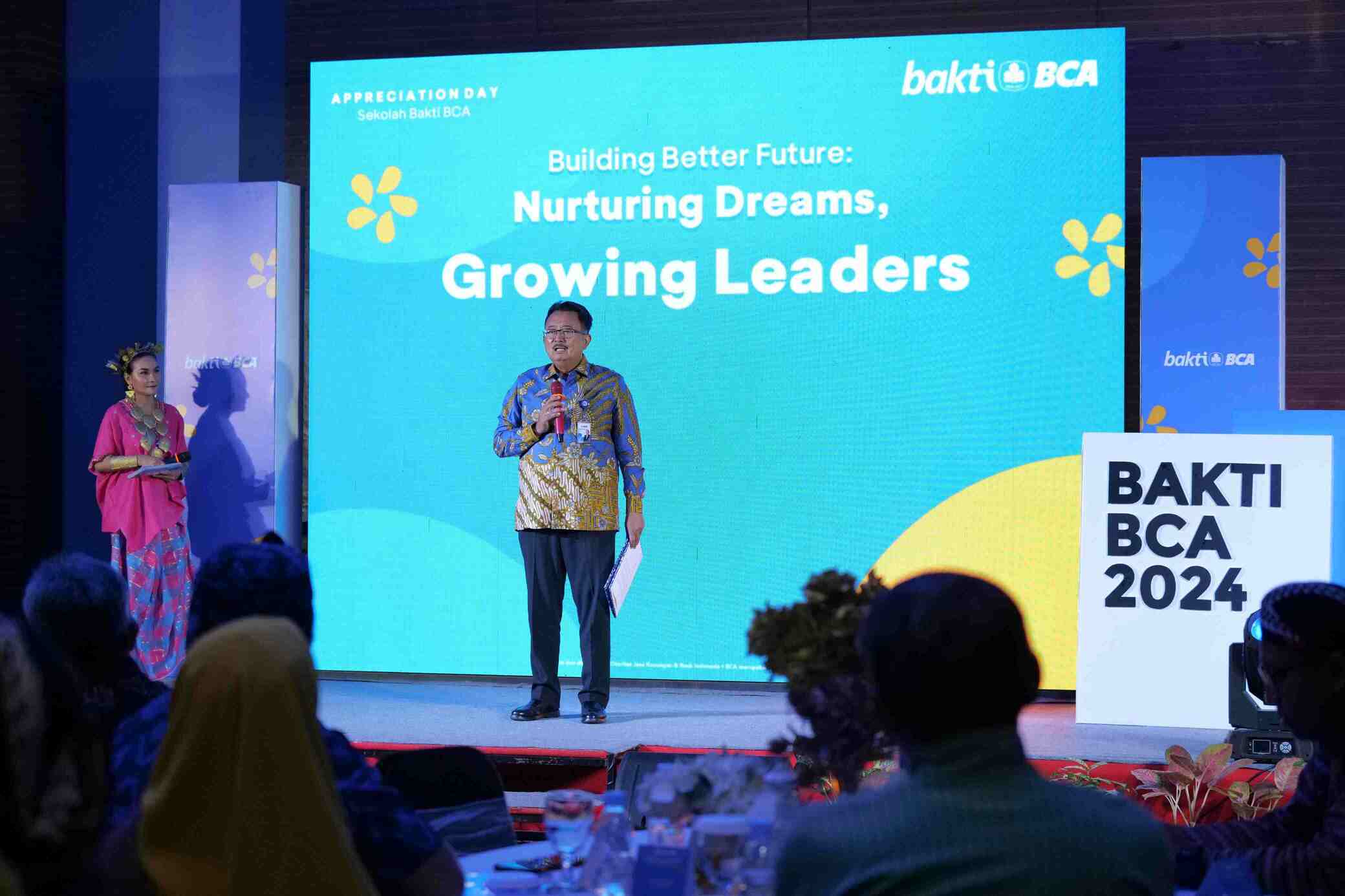 BCA Dukung Pendidikan Berkualitas lewat Program Sekolah Bakti BCA – Direktur PT Bank Central Asia Tbk (BCA), Antonius Widodo Mulyono dalam malam apresiasi di BCA Learning Institute, Kamis (25/4). Antonius Widodo menyebut, Sekolah Bakti BCA merupakan wujud dukungan perseroan pada pengembangan pendidikan di Indonesia sejak tahun 2000. Melalui Sekolah Bakti BCA, Perseroan turut memberikan pelatihan kepada para guru dan staf sekolah untuk meningkatkan kualitas pendidikan. Hingga 2023, BCA telah mendampingi 20 Sekolah Bakti tingkat SD hingga SMA yang tersebar di berbagai daerah.