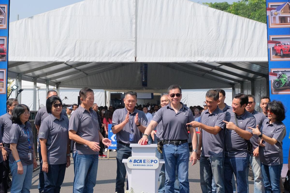 BCA Expo 2024 Bandung, Tanda Cinta BCA untuk Nasabah - Direktur BCA Haryanto Budiman (keempat kanan), EVP Consumer Loan BCA Welly Yandoko (ketiga kanan), Direktur BCA Finance Petrus Karim (ketiga kiri), Kepala Kantor Wilayah I BCA Weminto Suryadi (keempat kiri), beserta jajaran manajemen BCA dalam acara pembukaan BCA Expo Bandung 2024 di Kota Baru Parahyangan (24/8). Acara yang berlangsung pada 24 hingga 25 Agustus 2024 ini menghadirkan promo menarik mulai dari bunga spesial Kredit Kepemilikan Rumah (KPR) 1,45% eff. p.a. fixed 1 tahun, bunga spesial Kredit Kendaraan Bermotor (KKB) 2,45% flat p.a. untuk tenor 3 tahun dan promo DP 0%, hingga bunga spesial Kredit Sepeda Motor KSM 5,67% flat per tahun.