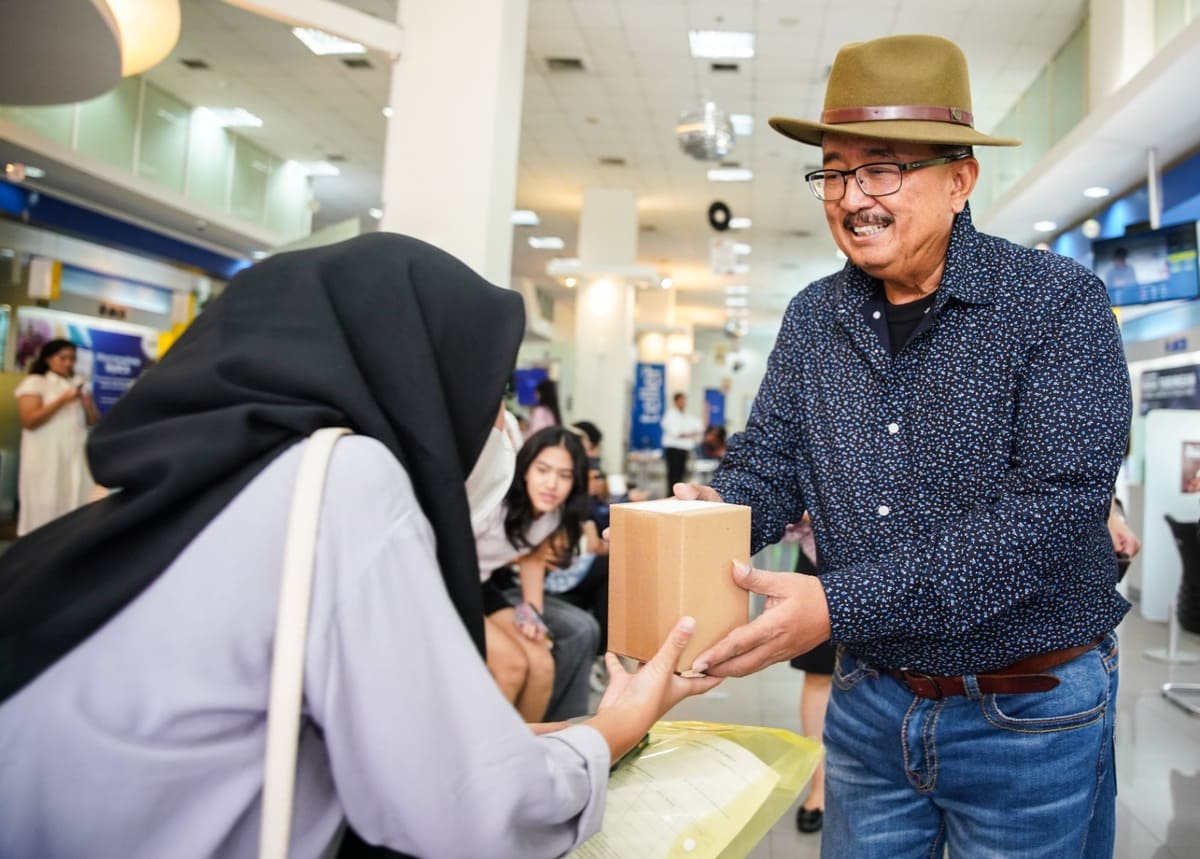 Direktur BCA Subur Tan (kanan) menyapa salah satu nasabah yang datang ke KCU BCA SCBD pada Rabu (4/9) dalam rangka merayakan Hari Pelanggan Nasional 2024.