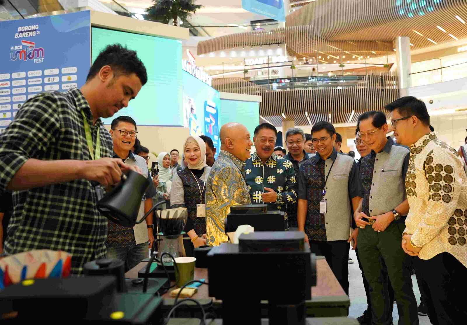 BCA UMKM Fest 2024 Jadi Wadah Bagi 1.753 UMKM Lokal Perluas Pasar - Presiden Direktur BCA Jahja Setiaatmadja (kedua dari kanan) bersama Menteri Koperasi dan UKM Teten Masduki (keempat dari kiri), Direktur BCA John Kosasih (kedua dari kiri), EVP Transaction Banking Business Development BCA I Ketut Alam Wangsawijaya (ketiga dari kanan), dan SVP Marketing Communication BCA Norisa Saifudin (ketiga dari kiri) berkunjung ke salah satu booth di acara BCA UMKM Fest 2024, Rabu (7/8). BCA UMKM Fest 2024 yang dilaksanakan secara hybrid diramaikan 1.753 tenant pelaku UMKM dan pengusaha produk lokal di bawah asuhan BCA Bangga Lokal.