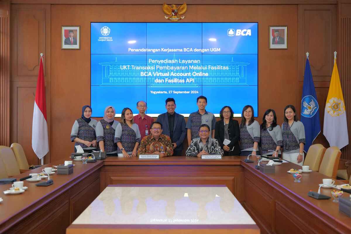 Untuk meresmikan kerja sama ini, BCA bersama UGM mengadakan seremoni penandatanganan perjanjian kerja sama penyediaan layanan transaksi pembayaran UKT melalui BCA Virtual AccountOnline dan API BCA pada Jumat (27/9). Acara ini dihadiri oleh Direktur BCA Antonius Widodo Mulyono, Wakil Rektor Bidang Sumber Daya Manusia dan Keuangan UGM Prof. Dr. Supriyadi, M.Sc., Direktur Pendidikan dan Pengajaran UGM Prof. dr. Gandes Retno Rahayu, M.Med.Ed., Ph.D., Direktur Kemahasiswaan UGM Dr. Sindung Tjahyadi, Direktur Keuangan UGM Prof. Syaiful Ali., MIS., Ph. D., Ak., CA, Direktur Kemitraan dan Relasi Global UGM Prof. Dr. Puji Astuti, S.Si., M.Sc., Apt., EVP Cash Management BCA Aniek Susilowati, EVP Corporate Communication & Social Responsibility BCA Hera F. Haryn serta jajaran manajemen BCA dan UGM lainnya.