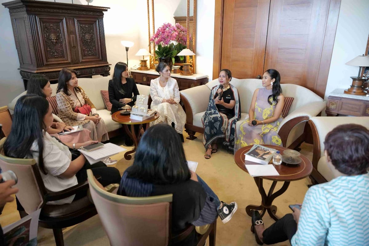 Bantu Perluas Akses Pasar, BCA Dampingi Perajin Desa Taro di Koleksi Terbaru TULOLA - EVP Corporate Communication & Social Responsibility BCA Hera F. Haryn (kedua kanan) didampingi oleh SVP Corporate Communication Susanti Nurmalawati (kiri), Co-Founder and Creative Conceptor TULOLA Happy Salma (kanan), dan Co-Founder and CEO TULOLA Franka Franklin Makarim (tengah) tengah berdiskusi dengan rekan-rekan media dalam konferensi pers peluncuran koleksi art wear “Garden of Wishes” TULOLA. Pendampingan perajin dari Desa Wisata Taro sebagai kontributor pada koleksi terbaru TULOLA diharapkan dapat memperluas akses pasar dan meningkatkan ekonomi masyarakat setempat, sekaligus menjadi inspirasi bagi desa-desa lain untuk terus mengembangkan potensi seni dan budaya mereka.