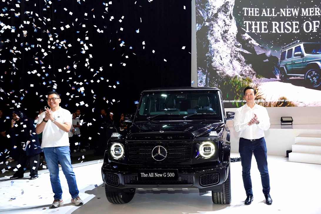 Resmi Meluncur di BCA Expoversary 2025, The All-New Mercedes Benz G 500 PROFESSIONAL LINE Tawarkan Performa Tangguh dan Kenyamanan Maksimal - Ketua Panitia BCA Expoversary 2025 & Direktur BCA Finance Petrus Karim (kanan) bersama Chief Operating Officer PT Inchcape Indomobil Distribution Indonesia Donald Rachmat (kiri) meluncurkan SUV The All-New Mercedes Benz G 500 PROFESSIONAL Line di acara pembukaan BCA Expoversary 2025 di ICE BSD City, Kabupaten Tangerang, Kamis (20/2). The All-New Mercedes Benz G 500 PROFESSIONAL Line dirancang untuk menghadirkan pengalaman berkendara offroad terbaik melalui sistem all-wheel drive, tiga differential locks, serta fitur LOW RANGE yang memastikan traksi optimal di berbagai medan. Sasis ladder frame, rigid rear axle, serta single suspension semakin memperkuat kapabilitas offroad kendaraan ini. Tak hanya ketangguhan, mobil ini juga menawarkan kenyamanan maksimal lewat fitur EXCLUSIVE line interior, jok berlapis nappa leather, trim kayu walnut open pore, serta sistem pencahayaan ambient yang menghadirkan suasana mewah.