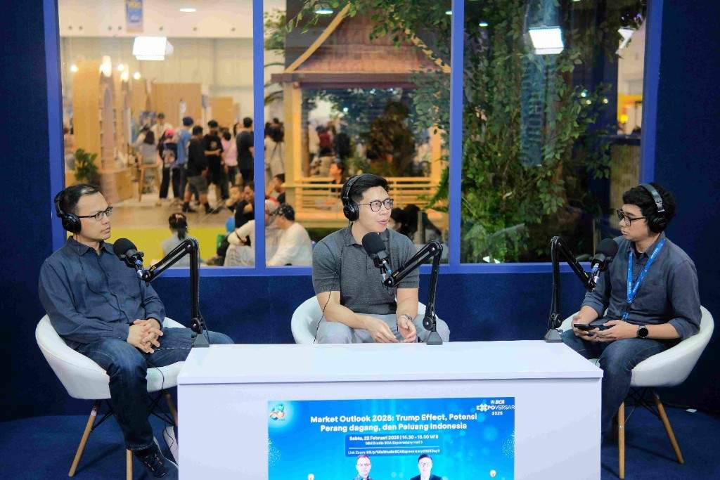 Ekonom BCA dan BCA Sekuritas Ungkap Potensi serta Tantangan Perekonomian RI pada 2025 - Chief Economist PT Bank Central Asia Tbk (BCA) David Sumual (kiri) dan Head of Research BCA Sekuritas Andre Benas (tengah) saat sesi Mini Studio ‘Market Outlook 2025: Trump Effect, Potensi Dagang, dan Peluang Indonesia’ di BCA Expoversary 2025. Ekonomi Indonesia diperkirakan akan tumbuh positif pada 2025 meski penuh dengan tantangan. Sejumlah sektor seperti properti, transportasi, logistik, makanan, minuman, hingga kemasan diproyeksikan akan terdorong kebijakan pemerintah, sehingga dapat menjadi katalis pertumbuhan ekonomi nasional. Tak hanya itu, terdapat juga potensi tambahan likuiditas berkat kebijakan Devisa Hasil Ekspor.