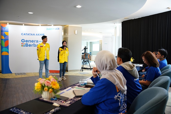 Melalui Genera-Z Berbakti, Bakti BCA Jembatani Generasi Muda Berikan Dampak Nyata untuk Indonesia - Tim peserta dari empat kampus berbeda menyampaikan laporan akhir pada acara “Catatan Akhir Genera-Z Berbakti”, Selasa (5/8), setelah mereka menjalani fase implementasi program selama sebulan di desa binaan Bakti BCA. BCA menetapkan tim terbaik Genera-Z Berbakti berdasarkan empat parameter penilaian, yaitu faktor keberlanjutan, dampak & evaluasi, solusi, serta presentasi yang dilakukan setiap tim.
