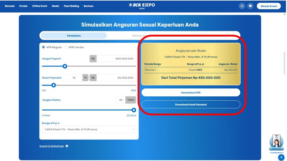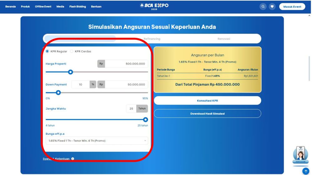Berikut langkah-langkah mudah melakukan simulasi KPR di laman expo.bca.co.id: