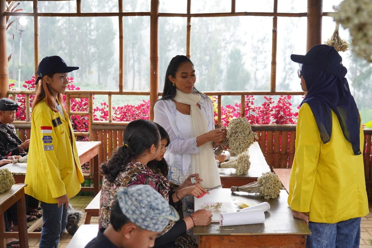 Aktris, Produser Sekaligus Pengusaha Happy Salma Ikut Hadiri Program Genera-Z Berbakti di Desa Wisata Edelweiss Wonokitri - Happy bersama Duta Bakti BCA Nicholas Saputra terlibat dalam pengambilan video yang merangkum pengabdian 4 tim mahasiswa pemenang program Genera-Z Berbakti di 4 desa wisata binaan Bakti BCA bertajuk Gen Z Bergerak: Bakti untuk Indonesia.