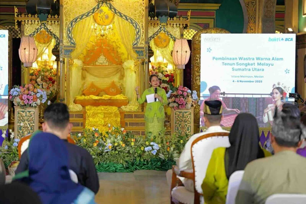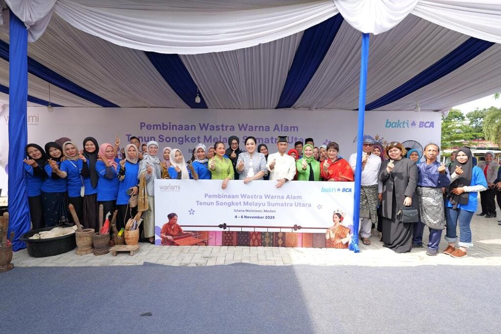 Medan, 5 November 2025 – PT Bank Central Asia Tbk (BCA), melalui payung Bakti BCA, bersama Perkumpulan Warna Alam Indonesia (Warlami) menggelar pembinaan pembuatan kain tradisional (wastra) menggunakan pewarna alam bagi 32 penenun songket Melayu Sumatra Utara di Istana Maimoon, Medan. Pembinaan yang berlangsung pada 4-6 November ini merupakan wujud nyata dukungan BCA terhadap pelestarian budaya sekaligus pengembangan eco-fashion wastra warna alam di berbagai daerah.