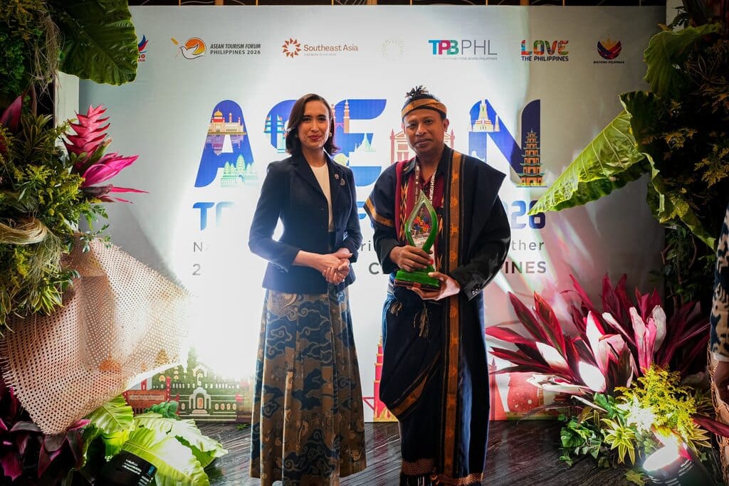 Buah Manis Komitmen BCA Optimalkan Potensi Desa Wisata Binaan – Deretan pemenang ASEAN Tourism Awards 2026 berpose bersama pada ASEAN Tourism Award Ceremony 2026 di Cebu, Filipina, Jumat (30/1). Dari total 12 penerima penghargaan tersebut, salah satunya adalah Desa Wisata Kampung Prai Ijing (Tebara) yang tergabung dalam program Desa Bakti BCA. Kepala Desa Tebara Marthen Ragowino Bira bersama Menteri Pariwisata Republik Indonesia Widiyanti Putri Wardhana (foto bawah) telah menerima penghargaan ASEAN Tourism Sustainable Awards untuk kategori Rural Product. Prestasi ini menegaskan komitmen perseroan dalam menumbuhkan perekonomian daerah dengan mengembangkan potensi UMKM dan desa wisata, yang diwujudkan melalui program Desa Bakti BCA.