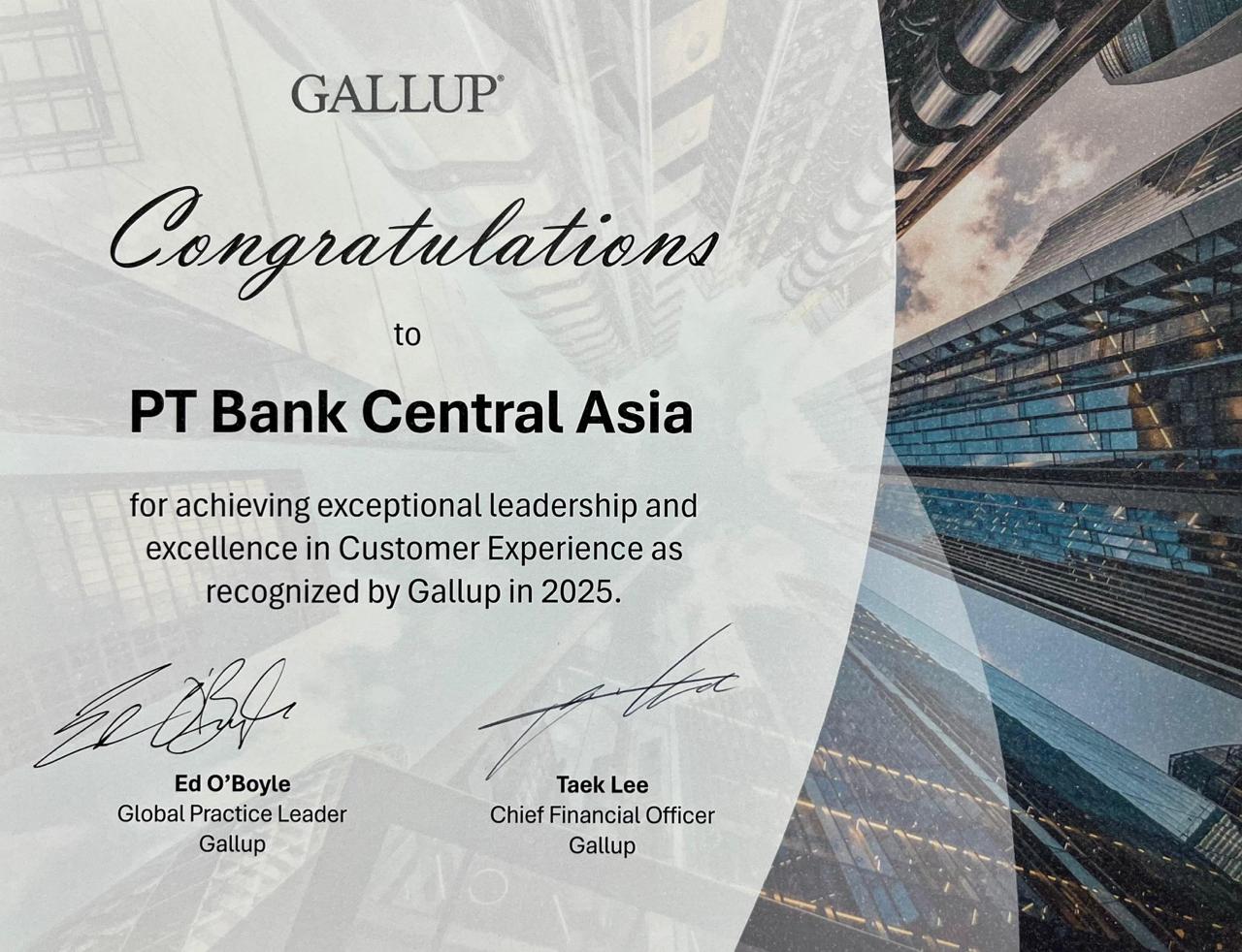 Gallup menyampaikan bahwa keberhasilan meraih penghargaan Gallup Global Customer Engagement 2025 ini tak lepas dari dedikasi seluruh insan BCA yang selalu bersemangat dalam menghadirkan keunggulan layanan nasabah.